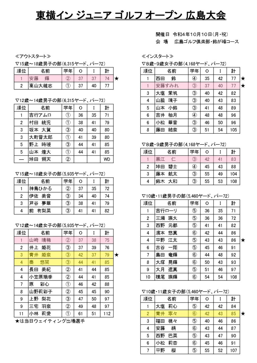 2022年10月10日に開催された東横インジュニアゴルフオープン広島予選に出場し、優勝された選手のご紹介です★