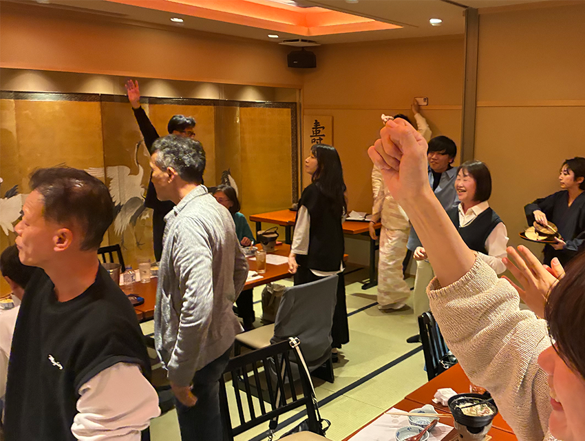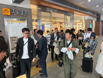 本社・津山組はバスで岡山駅へ、岡山組は直接岡山駅に集合し、新幹線で福岡へ向かいました。