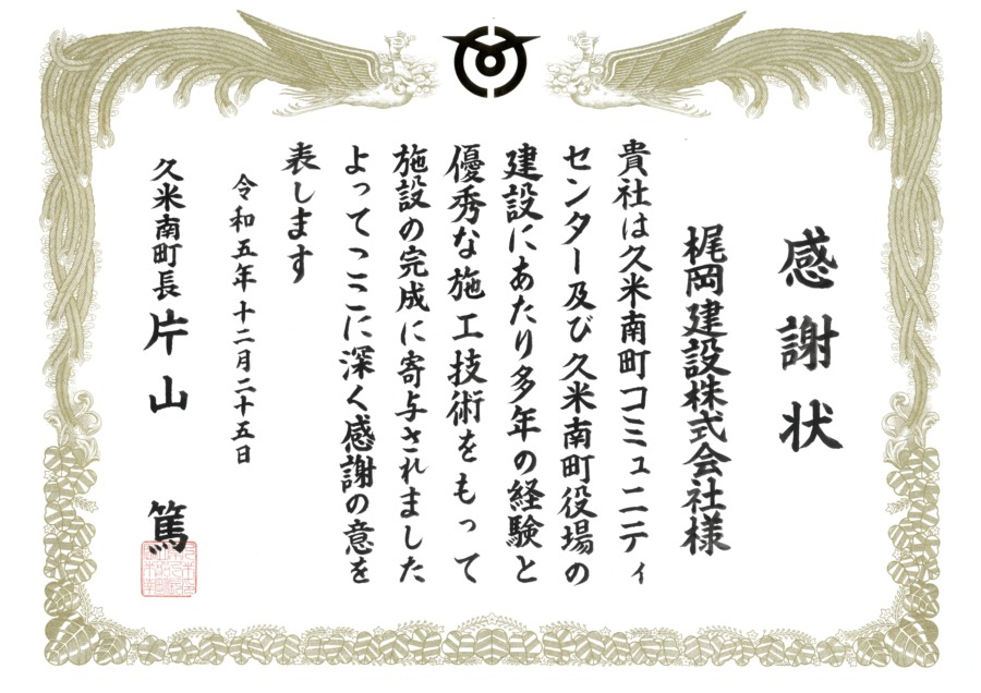 弊社が施工させていただきました、久米南町庁舎等複合施設の落成式が12月25日に開催されました。